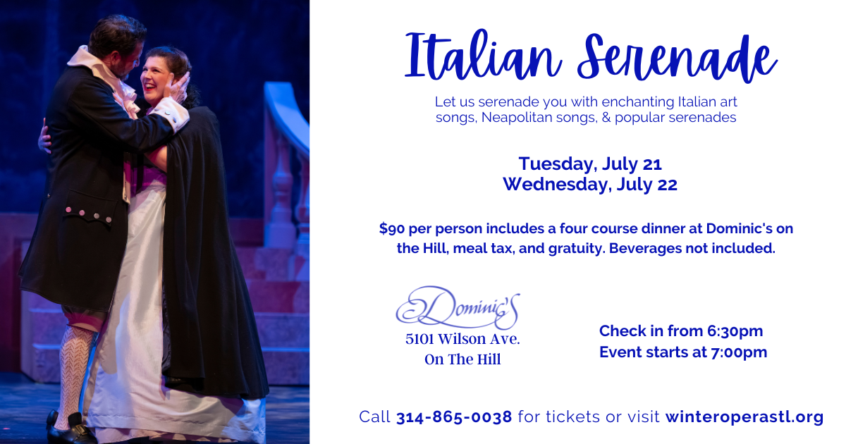 Let us serenade you with enchanting Italian art songs, Neapolitan songs, and popular Italian serenades. $90 per person includes a four course dinner at Dominic's on …